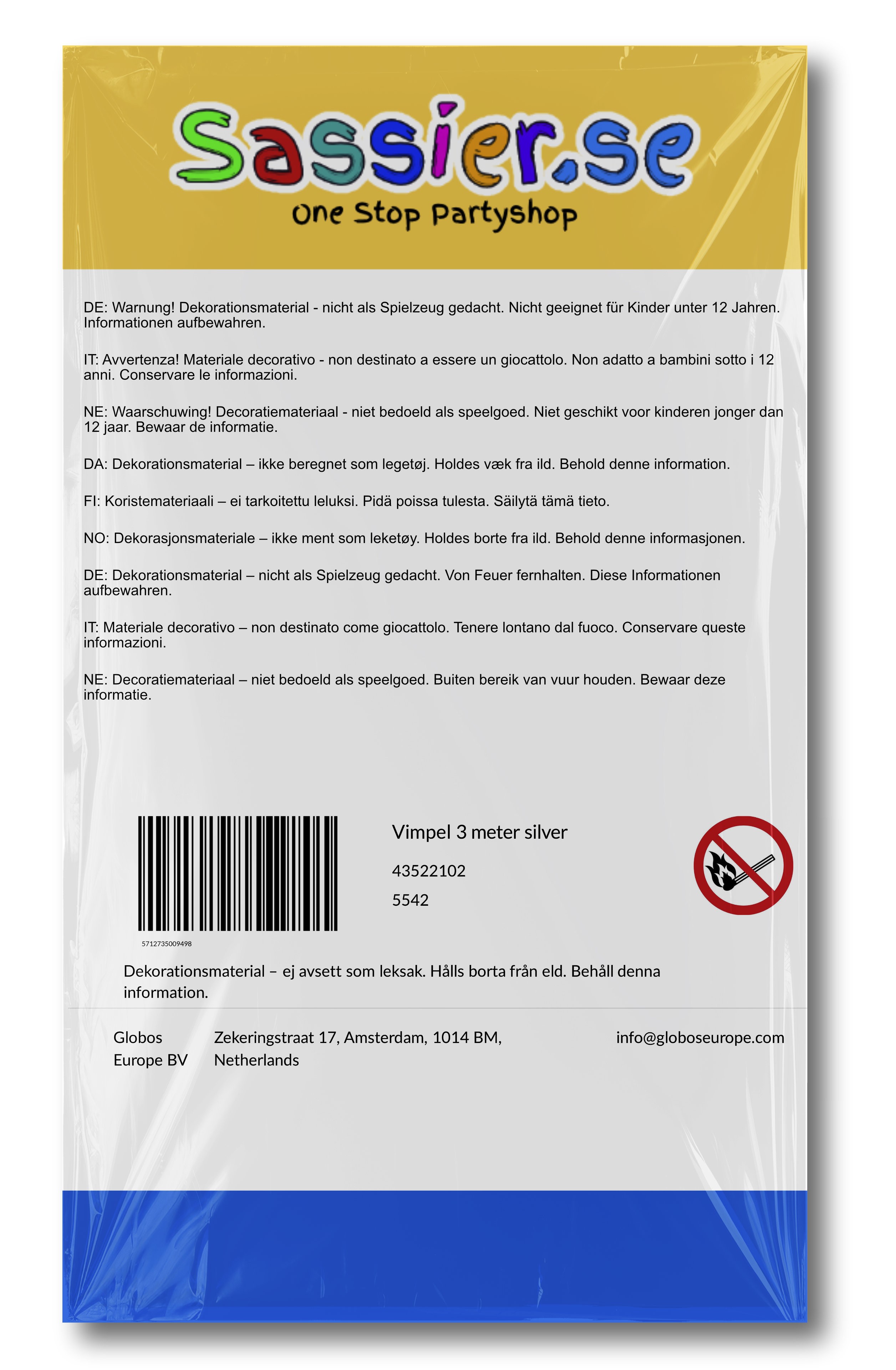 - Du får en 3 meter lång silverfärgad vimpelgirlang i vattenavvisande plast med flaggor i storleken 10 x 15 cm, levererad i 1-pack för inomhus- och utomhusbruk.