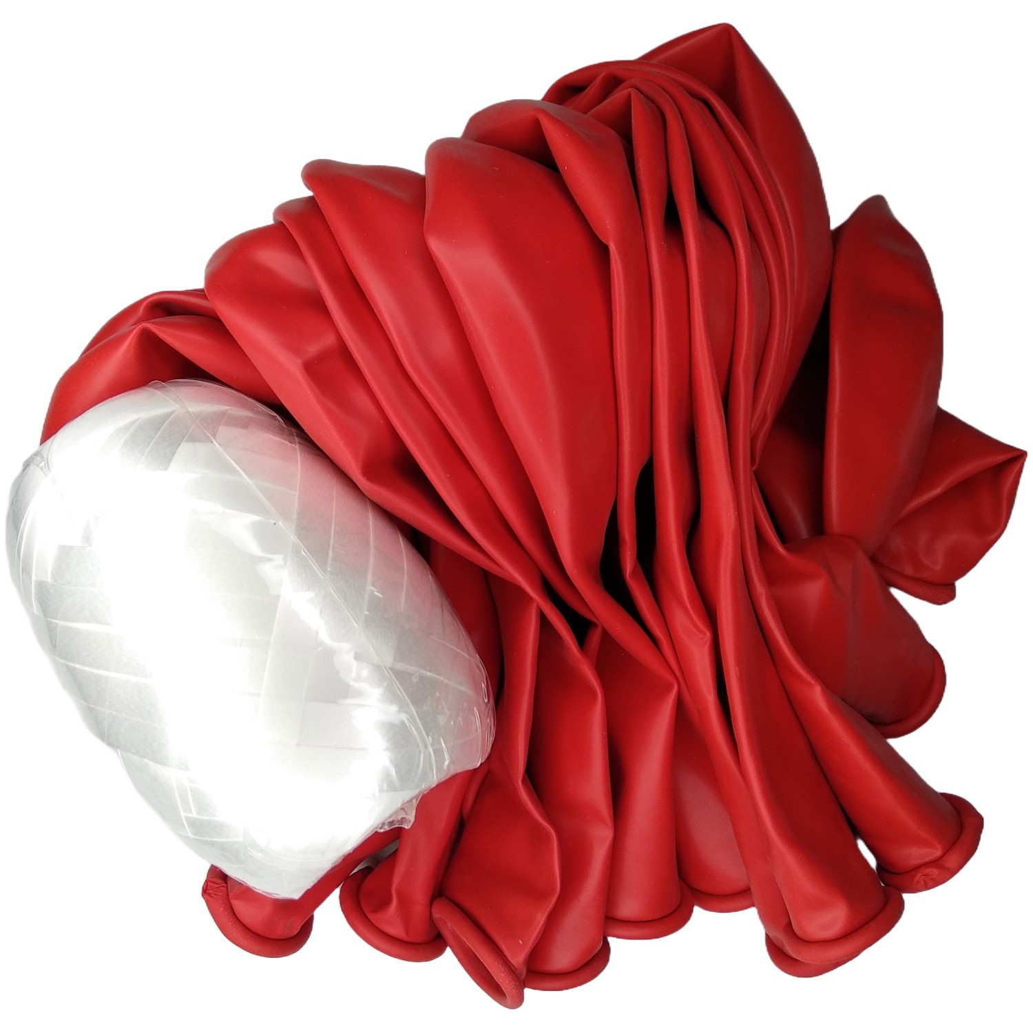 - När du köper produkten får du 15 röda latexballonger av biologiskt nedbrytbar naturgummi, ca 30 cm i diameter, samt 20 meter matchande ballongsnöre.