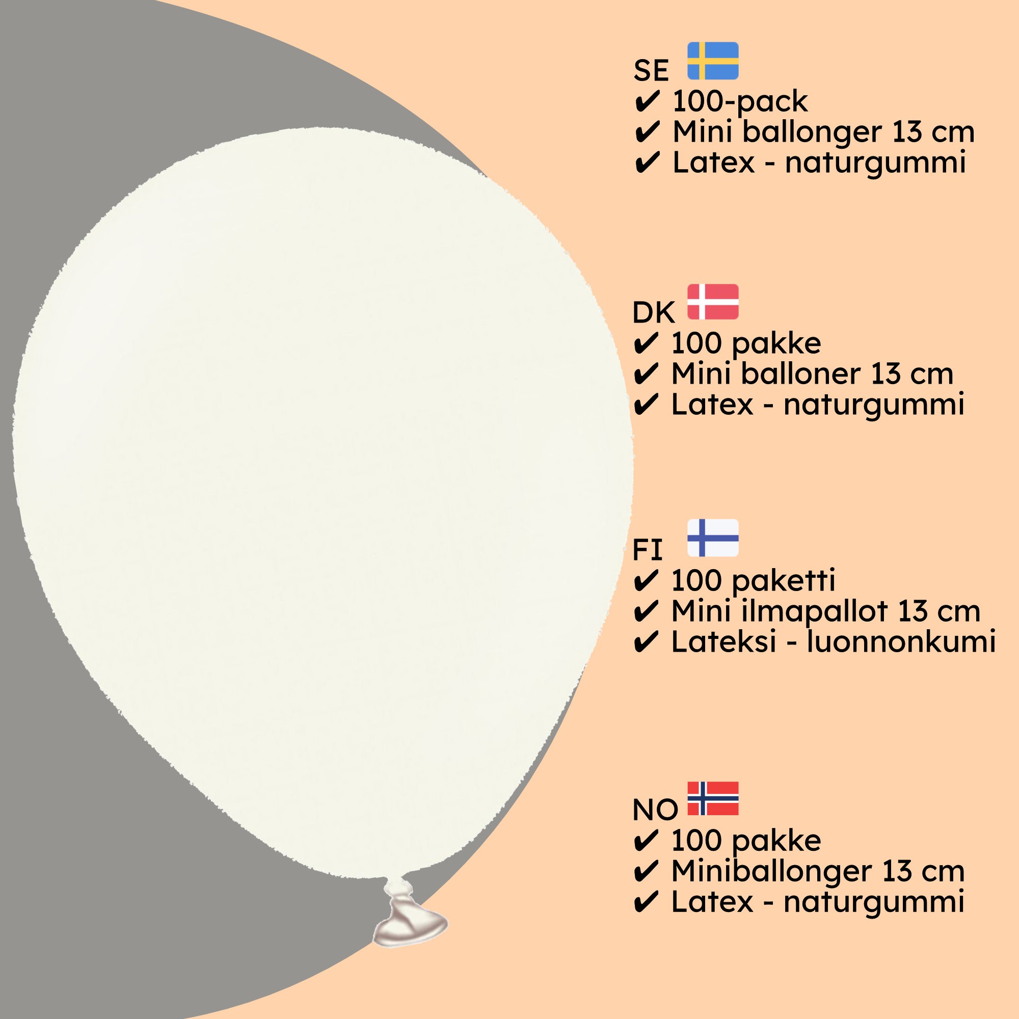 Mini-ballonger 100-pack – Vita Latexballonger 13 cm